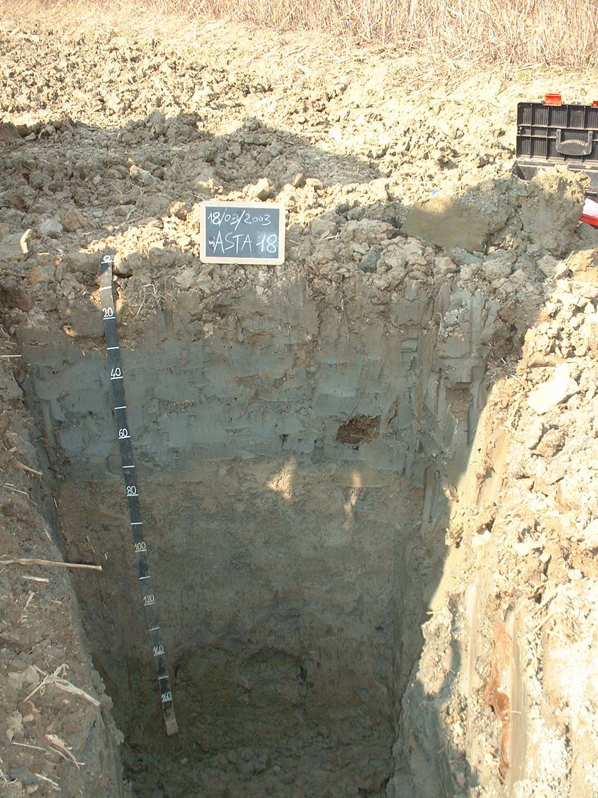 Orizzonte Bg1 : 70 - 95 cm; umido; colore grigio (5Y 5/1); tipo colore variegato; screziature 30 %, con dimensioni medie di 5 mm, con limite chiaro, dominanti di colore bruno olivastro chiaro (2,5Y 5/3); tessitura franco limosa; scheletro 0 % , di forma n.i.; struttura poliedrica subangolare fine di grado moderato; macropori < 0,1 % con dimensioni medie 1-5 mm; radicabilità 60 % ; resistenza: resistente; cementazione molto debole; moderatamente adesivo; molto plastico; molto fortemente calcareo; masse di carbonati 4 %, 2 mm, presenti nella matrice; masse di ferro-manganese 1 %, 4 mm, presenti nella matrice; limite inferiore chiaro.