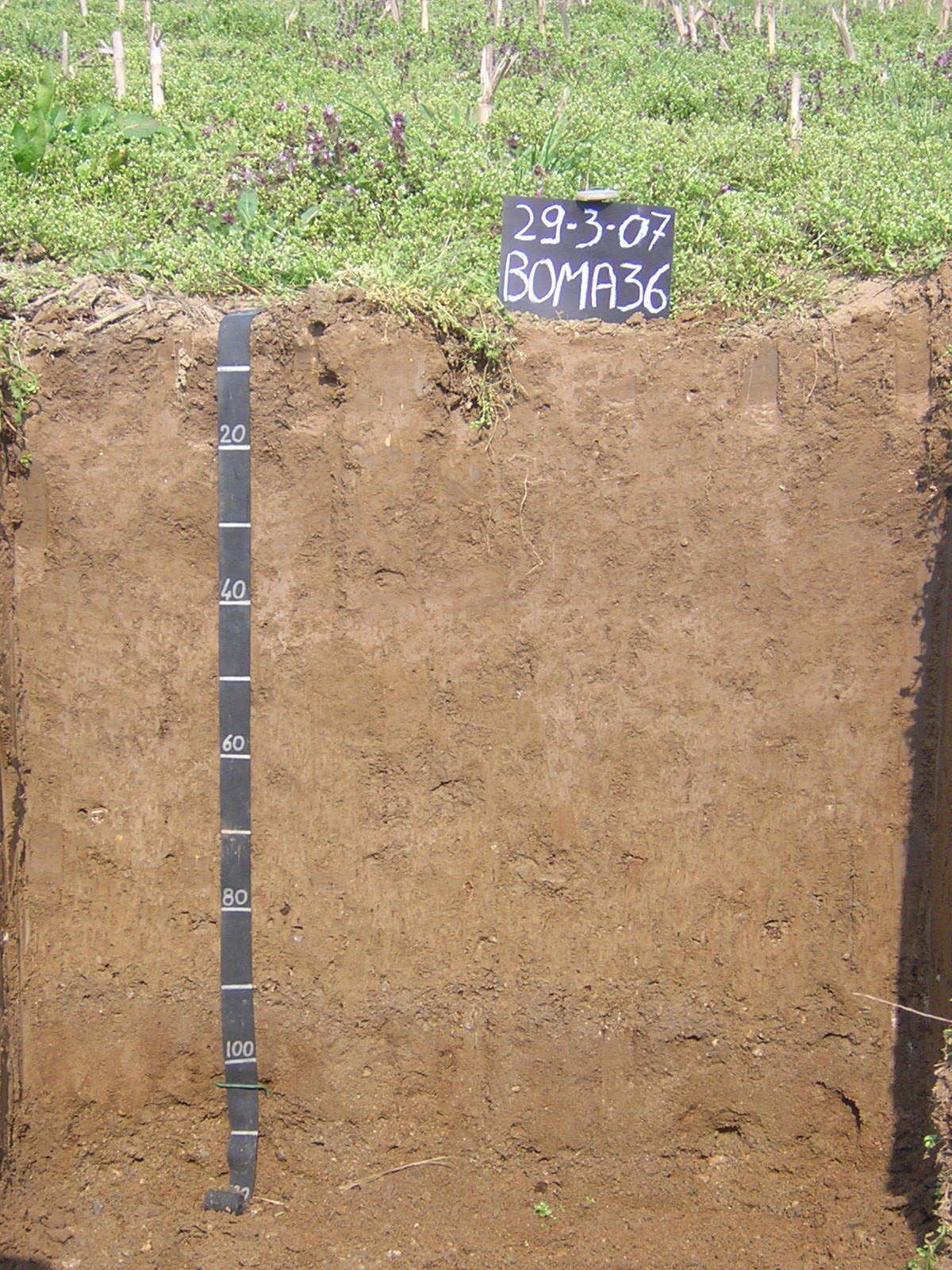 Il topsoil è caratterizzato da colore bruno, da tessitura franco-sabbiosa e da scheletro assente; la reazione è subacida ed il carbonato di calcio assente. Il subsoil ha colore bruno giallastroscuro, tessitura franco-sabbiosa e scheletro scarso; al di sotto dei 90 cm di profondità le tessiture divengono più grossolane (sabbioso franche) e lo scheletro abbondante (35-60%); la reazione rimane subacida scendendo lungo il profilo ed il carbonato di calcio è sempre assente. Il substrato è costituito da sabbie e ghiaie di origine fluviale.