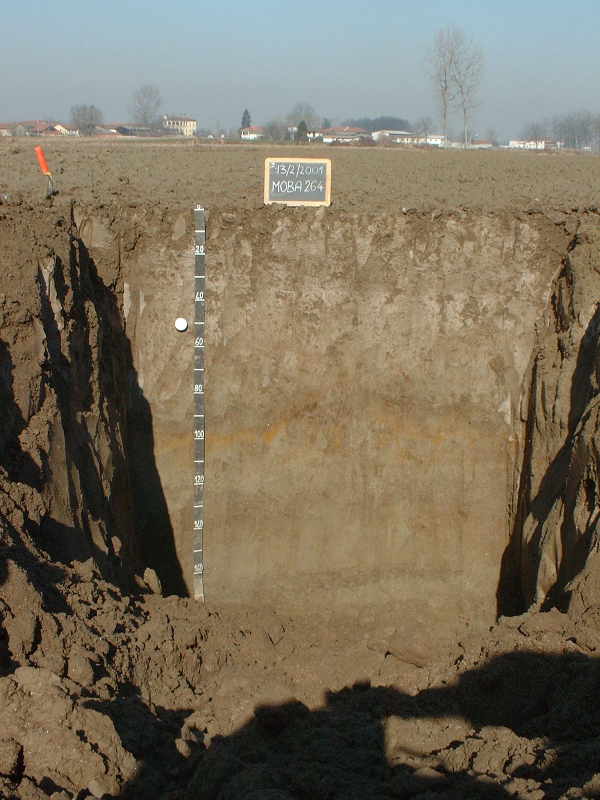 Orizzonte Cg1 : 60 - 80 cm; umido; colore bruno olivastro chiaro (2,5Y 5/3); colore subordinato bruno grigiastro (2,5Y 5/2); tipo colore variegato; screziature 5 %, con dimensioni medie di 4 mm, con limite chiaro, dominanti di colore bruno giallastro scuro (10YR 4/6); tessitura franco sabbiosa; scheletro 0 % , di forma n.i.; macropori 0,1-0,4 % con dimensioni medie 1-5 mm; radici 0/dmq, con dimensioni medie di mm , orientamento n.i.; radicabilità 70 % ; resistenza: debole; cementazione molto debole; non adesivo; non plastico; non calcareo; masse di ferro-manganese 2 %, 5 mm, presenti nella matrice; limite inferiore chiaro.