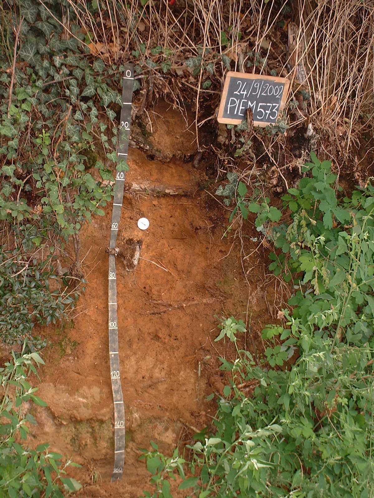 Orizzonte Bt1 : 30 - 65 cm; umido; colore bruno (7,5YR 4/4); tipo colore ossidato; tessitura franca; scheletro 0 % , di forma n.i.; struttura poliedrica subangolare media di grado debole; radici 15/dmq, con dimensioni medie di 5 mm e dimensioni massime di 15 mm, orientamento verticale; radicabilità 90 % ; resistenza: debole; cementazione molto debole; non adesivo; debolmente plastico; debolmente calcareo; pellicole primarie di argilla 5 %, presenti sulle facce degli aggregati; limite inferiore chiaro.