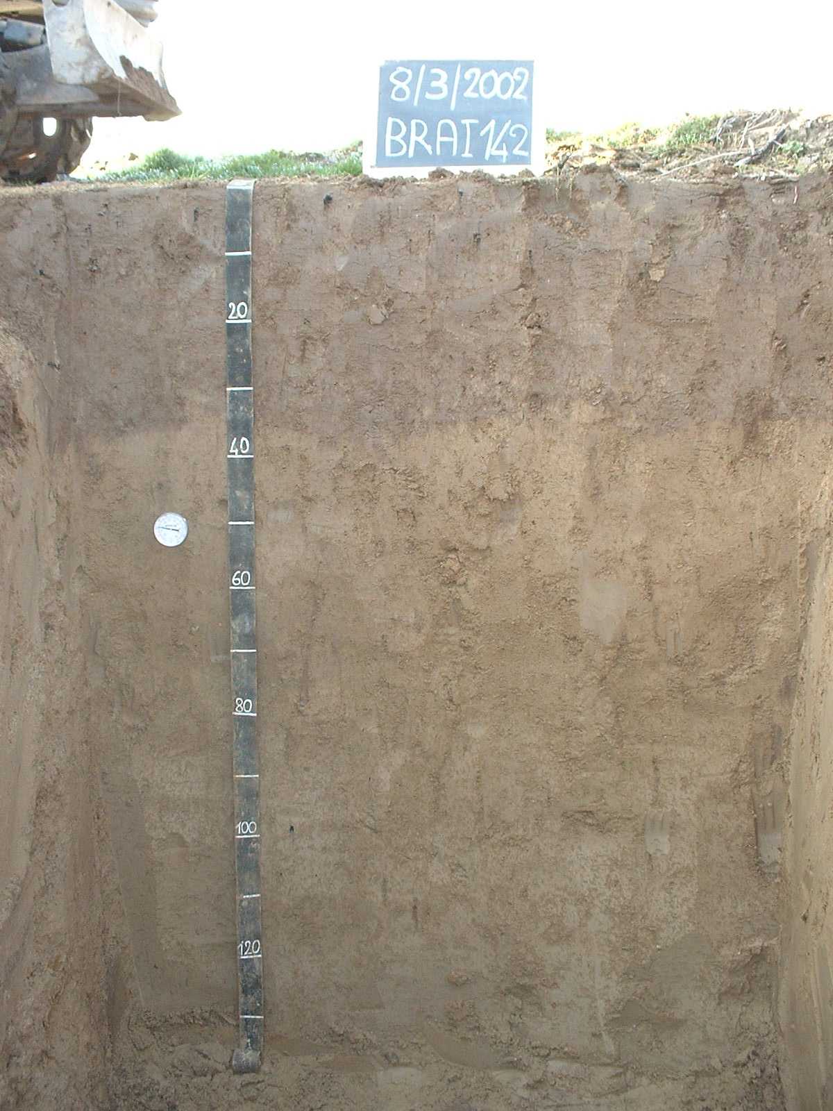Orizzonte C : 55 - 80 cm; umido; colore bruno giallastro chiaro (2,5Y 6/4); tipo colore ossidato; tessitura sabbioso franca; scheletro 7 % , di forma irregolare con diametro medio di 5 mm e diametro massimo di 20 mm, leggermente alterato; macropori 0,1-0,4 % con dimensioni medie 1-5 mm; radici 0/dmq, con dimensioni medie di mm , orientamento n.i.; radicabilità 40 % ; resistenza: incoerente; cementazione molto debole; non adesivo; non plastico; calcareo; limite inferiore netto.