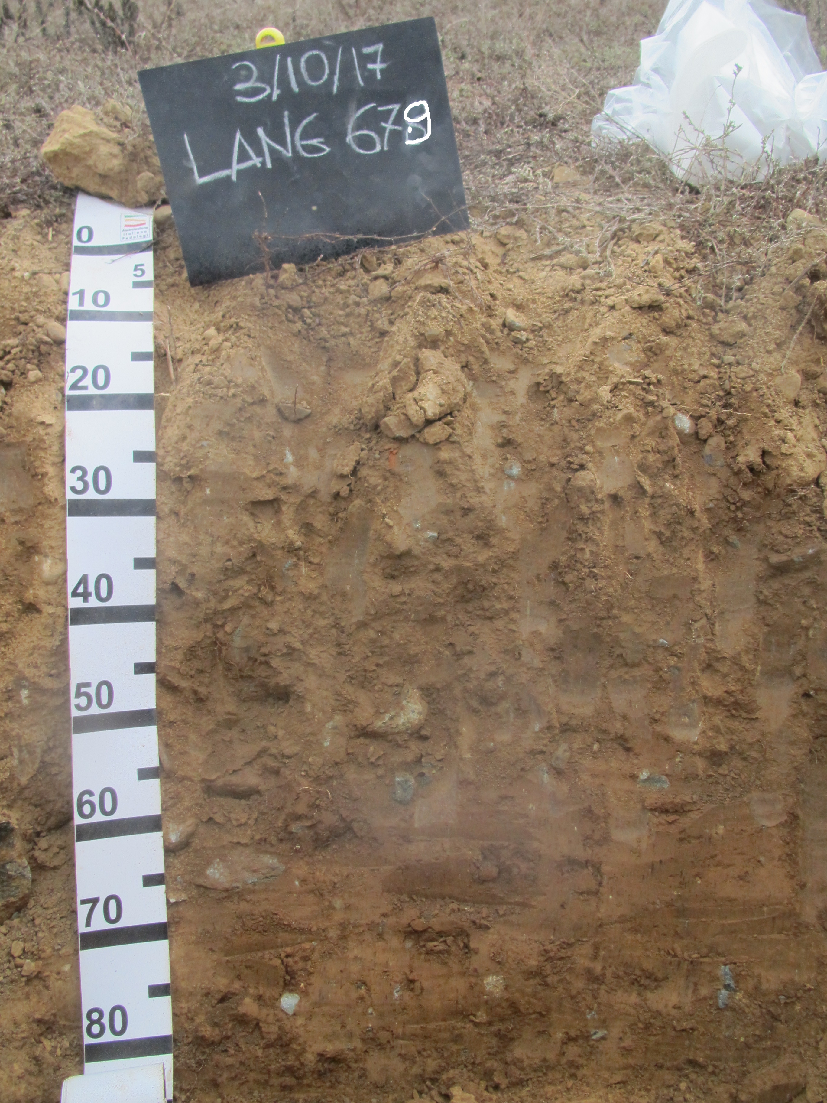 Orizzonte Bt : 60 - 90 cm; secco; colore bruno (7,5YR 5/4); colore subordinato bruno intenso (7,5YR 5/6); tipo colore ossidato; screziature 10 %, con dimensioni medie di 6 mm, con limite chiaro, dominanti di colore rosso giallastro (5YR 5/6); tessitura franca con diametro medio di 20 mm e diametro massimo di 30 mm, fortemente alterato; struttura poliedrica angolare media di grado forte; macropori > 0,4 % con dimensioni medie <1 mm; radicabilità 40 % ; resistenza: molto resistente; cementazione molto debole; debolmente adesivo; debolmente plastico; non calcareo; masse di ferro-manganese 3 %, 3 mm, presenti nella matrice; pellicole primarie di argilla 3 %, presenti nella matrice; limite inferiore non raggiuto.