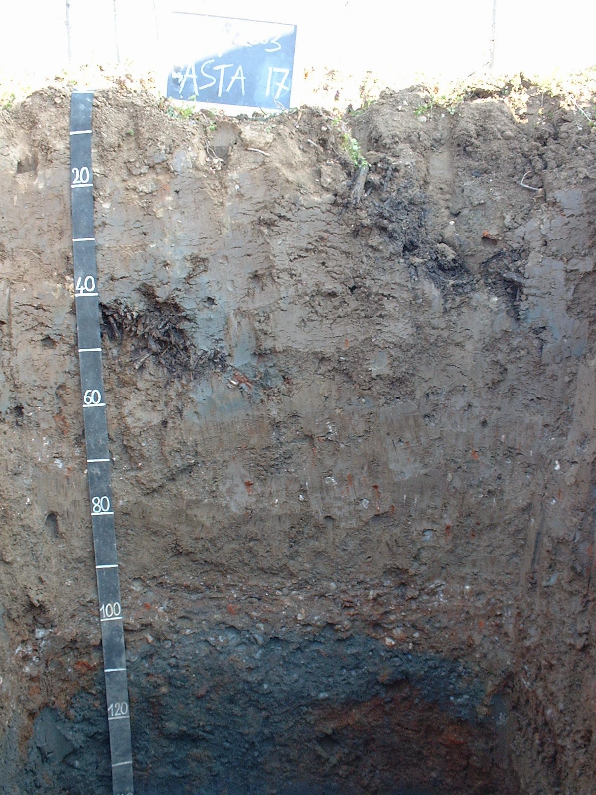 Orizzonte Cg2 : 100 - 140 cm; umido; colore 10GY 4/1; tipo colore ridotto; tessitura franco sabbiosa; scheletro 30 % , di forma n.i.; radicabilità 0 % ; resistenza: debole; cementazione molto debole; non adesivo; non plastico; calcareo; limite inferiore abrupto.