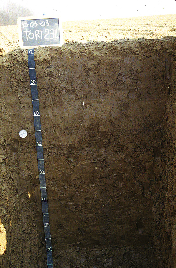 Orizzonte AB : 35 - 50 cm; umido; colore bruno giallastro scuro (10YR 4/4); colore subordinato bruno grigiastro (10YR 5/2); colore delle facce bruno giallastro (10YR 5/6); tipo colore ossidato; tessitura franco limoso argillosa; scheletro 0 % , di forma n.i.; macropori < 0,1 % con dimensioni medie <1 mm; radici 0/dmq, con dimensioni medie di mm , orientamento n.i.; radicabilità 80 % ; resistenza: moderatamente resistente; cementazione molto debole; debolmente adesivo; debolmente plastico; non calcareo; limite inferiore chiaro.