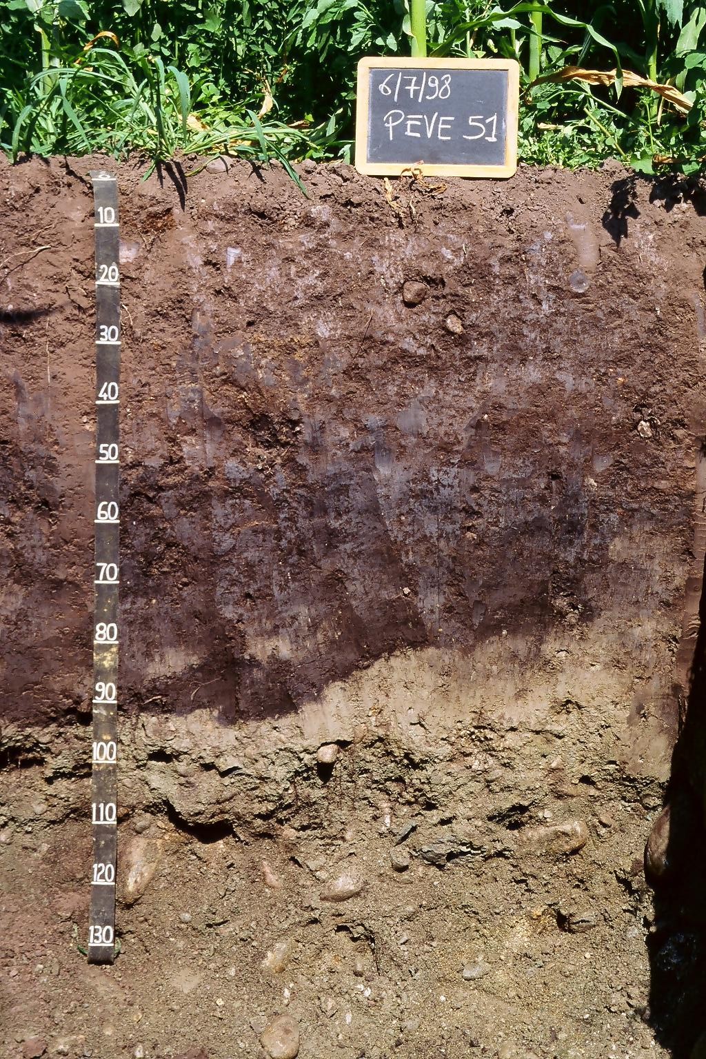 Orizzonte Cb : 90 - 100 cm; umido; colore grigio scuro (2,5Y 4/1); screziature 2 %, dominanti di colore bruno grigiastro molto scuro (10YR 3/2); tessitura franco sabbiosa; scheletro 5 % , di forma subarrotondata con diametro medio di 15 mm e diametro massimo di 40 mm, alterato; radici 1/dmq, con dimensioni medie di 1 mm e dimensioni massime di 1 mm, orientamento n.i.; resistenza: incoerente; cementazione molto debole; non adesivo; non plastico; non calcareo; limite inferiore abrupto.