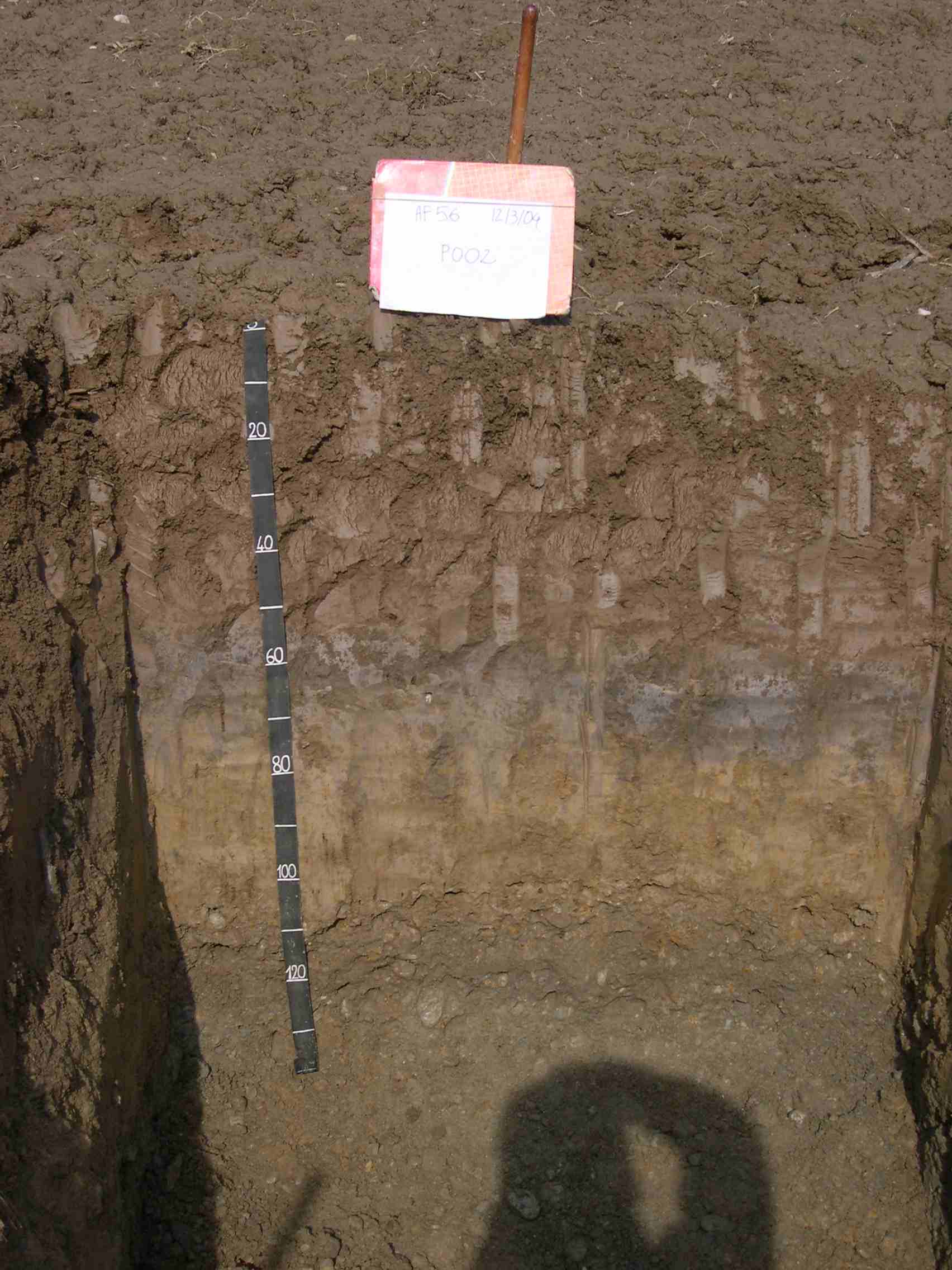 Orizzonte Ap2 : 40 - 55 cm; umido; colore bruno (10YR 4/3); tessitura franca; scheletro 0 % , di forma n.i.; macropori < 0,1 % con dimensioni medie >5 mm; radici 1/dmq, con dimensioni medie di 1 mm , orientamento nessuno; radicabilità 70 % ; resistenza: moderatamente resistente; cementazione molto debole; debolmente adesivo; debolmente plastico; non calcareo; limite inferiore abrupto.
