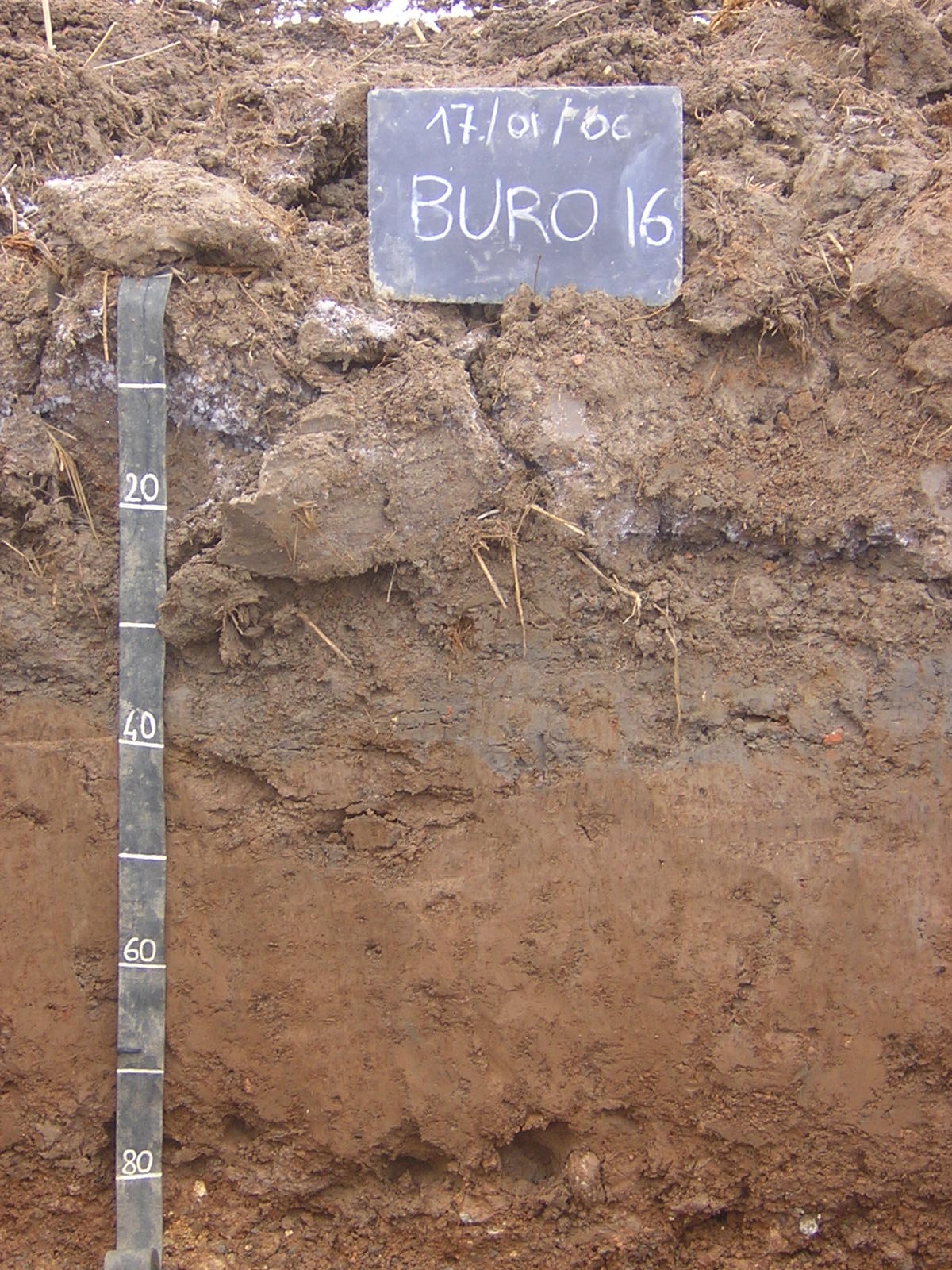 Orizzonte Bt : 40 - 80 cm; umido; colore bruno (7,5YR 4/4); colore delle facce bruno (7,5YR 4/3); tipo colore ossidato; screziature 4 %, con dimensioni medie di 4 mm, con limite chiaro, dominanti di colore bruno grigiastro (10YR 5/2), secondarie di colore bruno (10YR 5/3); tessitura franca; scheletro 0 % , di forma n.i.; struttura poliedrica angolare fine di grado moderato; macropori 0,1-0,4 % con dimensioni medie >5 mm; radicabilità 70 % ; resistenza: moderatamente resistente; cementazione molto debole; debolmente adesivo; debolmente plastico; non calcareo; masse di ferro-manganese 1 %, 1 mm, presenti nella matrice; pellicole primarie di argilla 10 %, presenti sulle facce degli aggregati; limite inferiore abrupto.