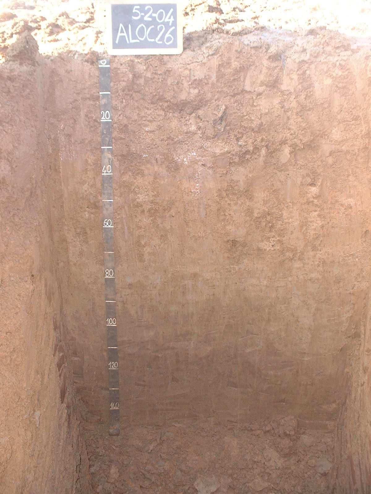 Orizzonte Bt : 120 - 150 cm; umido; colore bruno olivastro chiaro (2,5Y 5/3); colore subordinato bruno grigiastro (2,5Y 5/2); tipo colore ridotto; tessitura franco limoso argillosa; scheletro 0 % , di forma n.i.; struttura poliedrica angolare fine di grado moderato; macropori < 0,1 % con dimensioni medie <1 mm; radici 0/dmq, con dimensioni medie di mm , orientamento n.i.; radicabilità 20 % ; resistenza: rigido; cementazione debole; moderatamente adesivo; moderatamente plastico; non calcareo; noduli di ferro-manganese 8 %, 2 mm, presenti nella matrice; pellicole primarie di argilla 10 %, presenti sulle facce degli aggregati; limite inferiore non raggiuto.