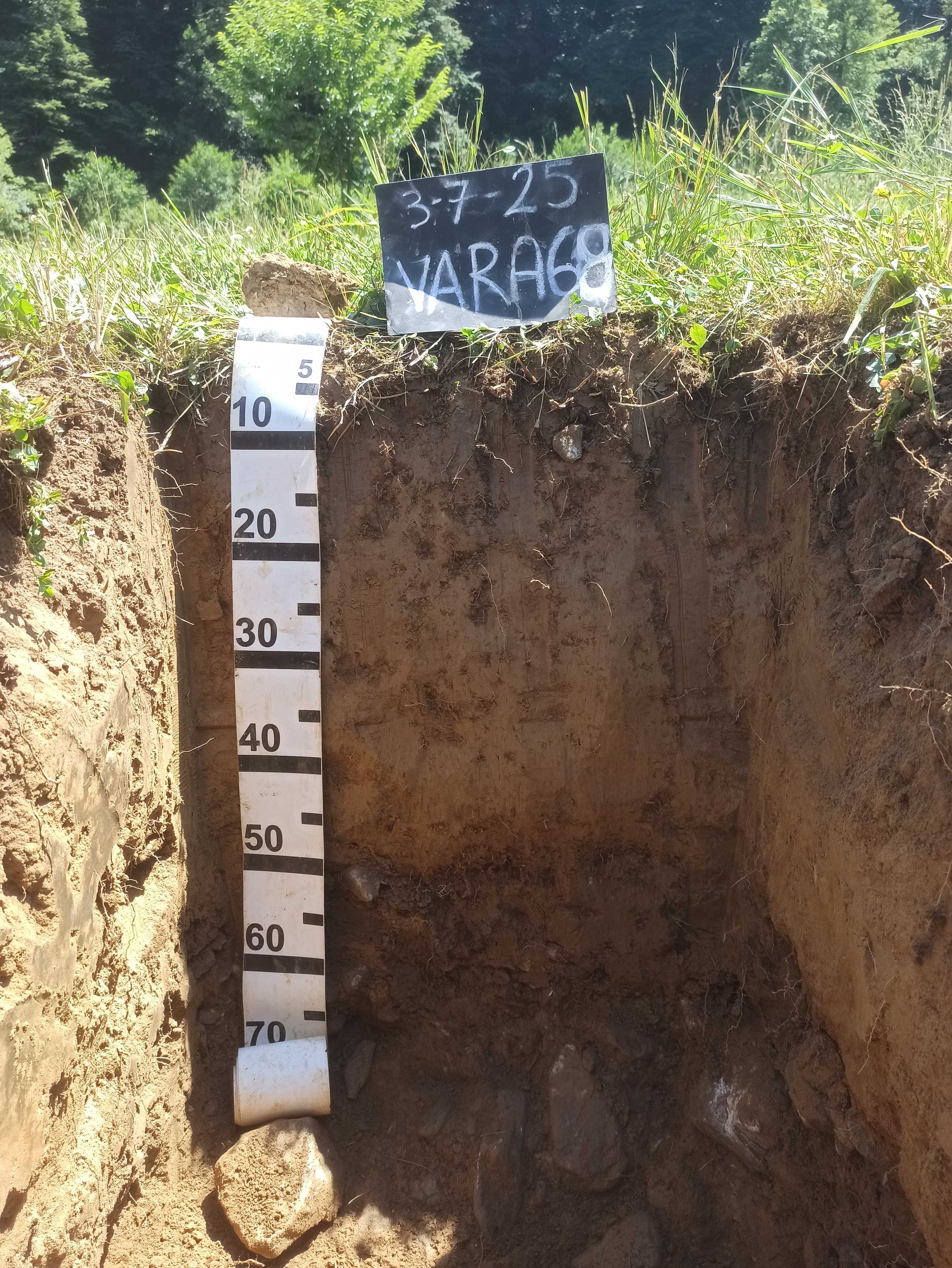 Orizzonte Bt : 50 - 70 cm; umido; tipo colore ossidato; tessitura franca; scheletro 45 % , di forma irregolare con diametro medio di 40 mm e diametro massimo di 130 mm; struttura poliedrica subangolare media di grado forte; radicabilità 20 % ; resistenza: resistente; cementazione molto debole; non adesivo; moderatamente plastico; non calcareo; masse di ferro-manganese 2 %, 1 mm, presenti nella matrice; pellicole primarie di argilla 3 %, presenti sulle facce degli aggregati.