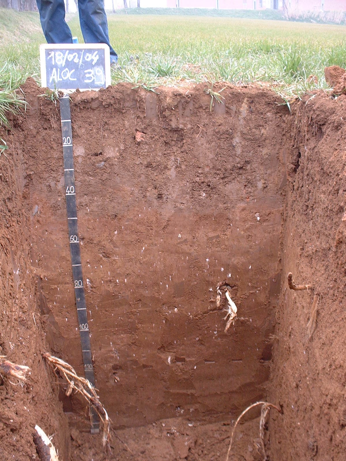 Orizzonte BC : 120 - 140 cm; umido; colore bruno intenso (7,5YR 4/6); tipo colore ossidato; tessitura franco limoso argillosa; scheletro 0 % , di forma n.i.; struttura poliedrica subangolare media di grado moderato; macropori 0,1-0,4 % con dimensioni medie <1 mm; radici 4/dmq, con dimensioni medie di 1 mm e dimensioni massime di 50 mm, orientamento nessuno; radicabilità 70 % ; resistenza: molto resistente; cementazione molto debole; debolmente adesivo; moderatamente plastico; non calcareo; noduli di carbonati 1 %, 20 mm, presenti nella matrice; limite inferiore chiaro.